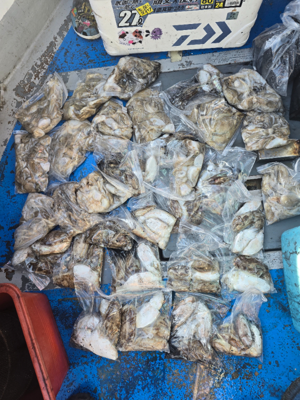 오늘은 비가 오지않아서 좋네요!! 바람은 꽤 있었습니다. 물때가 물때 인지라 멀리 나와서 갑오징어 잘 나오는 곳에서 쭈꾸미 갑오징어 섞어서 사이즈 큰놈들만 나오는곳에서 낚시했습니다.^^ 갑오징어도 그렇고 쭈꾸미도 그렇고 사이즈가 아주 훌륭합니다. 특히 쭈꾸미 사이즈가 엄청 크네요. 오늘 장원 하신분이 갑오징어 60갑 쭈꾸미 130수 하시고 나머지 분들은 100수 정도 하셨습니다.